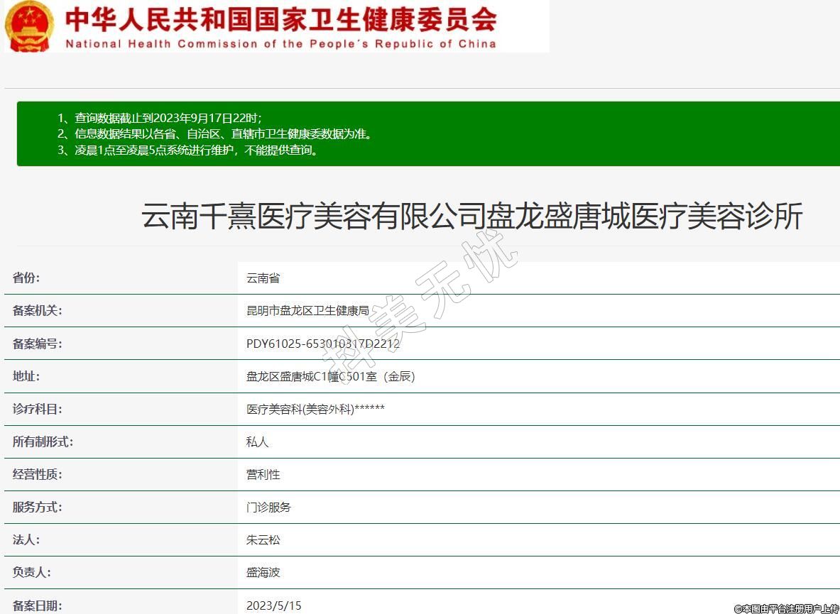 備案機(jī)關(guān):昆明市盤(pán)龍區(qū)衛(wèi)生健康局