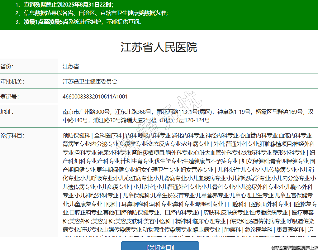 省份:江蘇省審批機關:江蘇省衛(wèi)生健康委員會登記號:46600083832010611A1001地址:南京市廣州路300號;江東北路368號;雨花西路113-1號(病區(qū)),鐘阜路1-19號,棲霞區(qū)馬群鎮(zhèn)169號,漢中路140號,浦江路30號鴻瑞大廈2號樓(B樓)1層120-124號診療科目:預防保健科 | 全科醫(yī)療科 | 內科;呼吸內科專業(yè);消化內科專業(yè);神經內科專業(yè);心血管內科專業(yè);血液內科專業(yè);腎病學專業(yè);內分泌專業(yè);免疫學專業(yè);變態(tài)反應專業(yè);老年病專業(yè) | 外科;普通外科專業(yè);肝臟移植項目;神經外科專業(yè);骨科專業(yè);泌尿外科專業(yè);腎臟移植項目;胸外科專業(yè);心臟大血管外科專業(yè);燒傷科專業(yè);整形外科專業(yè) | 婦產科;婦科專業(yè);產科專業(yè);計劃生育專業(yè);優(yōu)生學專業(yè);生殖健康與不孕癥專業(yè) | 婦女保健科;青春期保健專業(yè);圍產期保健專業(yè);更年期保健專業(yè);婦女心理衛(wèi)生專業(yè);婦女營養(yǎng)專業(yè) | 兒科;新生兒專業(yè);小兒傳染病專業(yè);小兒消化專業(yè);小兒呼吸專業(yè);小兒心臟病專業(yè);小兒腎病專業(yè);小兒血液病專業(yè);小兒神經病學專業(yè);小兒內分泌專業(yè);小兒遺傳病專業(yè);小兒免疫專業(yè) | 小兒外科;小兒普通外科專業(yè);小兒骨科專業(yè);小兒泌尿外科專業(yè);小兒胸心外科專業(yè);小兒神經外科專業(yè) | 兒童保健科;兒童生長發(fā)育專業(yè);兒童營養(yǎng)專業(yè);兒童心理衛(wèi)生專業(yè);兒童五官保健專業(yè);兒童康復專業(yè) | 眼科 | 耳鼻咽喉科;耳科專業(yè);鼻科專業(yè);咽喉科專業(yè) | 口腔科;口腔頜面外科專業(yè);口腔修復專業(yè);口腔正畸專業(yè);其他(口腔預防保健專業(yè)、口腔內科專業(yè)) | 皮膚科;皮膚病專業(yè);性傳播疾病專業(yè) | 醫(yī)療美容科;美容外科;美容牙科;美容皮膚科;美容中醫(yī)科 | 精神科;臨床心理專業(yè) | 傳染科;腸道傳染病專業(yè);呼吸道傳染病專業(yè);肝炎專業(yè);蟲媒傳染病專業(yè);動物源性傳染病專業(yè);蠕蟲病專業(yè) | 腫瘤科 | 急診醫(yī)學科 | 康復醫(yī)學科 | 運動醫(yī)學科 | 職業(yè)病科;職業(yè)中毒專業(yè);塵肺專業(yè);放射病專業(yè);物理因素損傷專業(yè);職業(yè)健康監(jiān)護專業(yè) | 麻醉科 | 疼痛科 | 重癥醫(yī)學科 | 醫(yī)學檢驗科;臨床體液、血液專業(yè);臨床微生物學專業(yè);臨床化學檢驗專業(yè);臨床免疫、血清學專業(yè);臨床細胞分子遺傳學專業(yè) | 病理科 | 醫(yī)學影像科;X線診斷專業(yè);CT診斷專業(yè);磁共振成像診斷專業(yè);核醫(yī)學專業(yè);超聲診斷專業(yè);心電診斷專業(yè);腦電及腦血流圖診斷專業(yè);神經肌肉電圖專業(yè);介入放射學專業(yè);放射治療專業(yè) | 中醫(yī)科;針灸科專業(yè);推拿科專業(yè)******級別:三級法定代表人:劉云主要負責人:劉云執(zhí)業(yè)許可證有效期:2019/12/06 -至- 2034/12/05 -