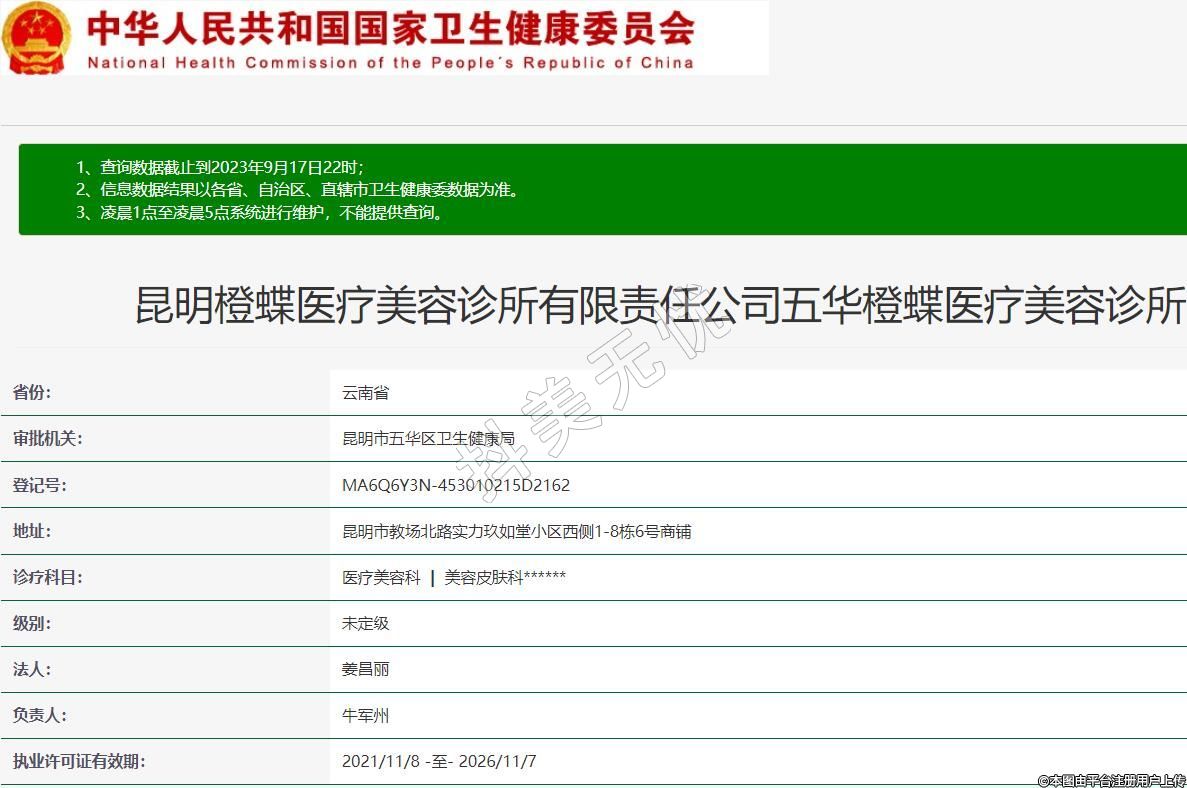 昆明橙蝶醫(yī)療美容診所有限責(zé)任公司五華橙蝶醫(yī)療美容診所