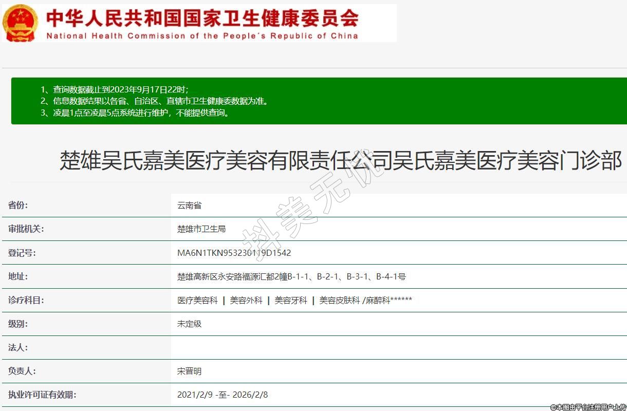 楚雄吳氏嘉美醫(yī)療美容有限責(zé)任公司吳氏嘉美醫(yī)療美容門診部