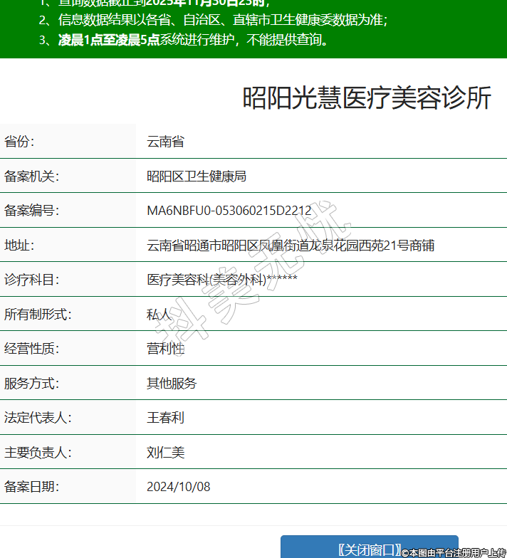 省份:云南省備案機(jī)關(guān):昭陽區(qū)衛(wèi)生健康局備案編號(hào):MA6NBFU0-053060215D2212地址:云南省昭通市昭陽區(qū)鳳凰街道龍泉花園西苑21號(hào)商鋪診療科目:醫(yī)療美容科(美容外科)******所有制形式:私人經(jīng)營性質(zhì):營利性服務(wù)方式:其他服務(wù)法定代表人:王春利主要負(fù)責(zé)人:劉仁美備案日期:2024/10/08 -