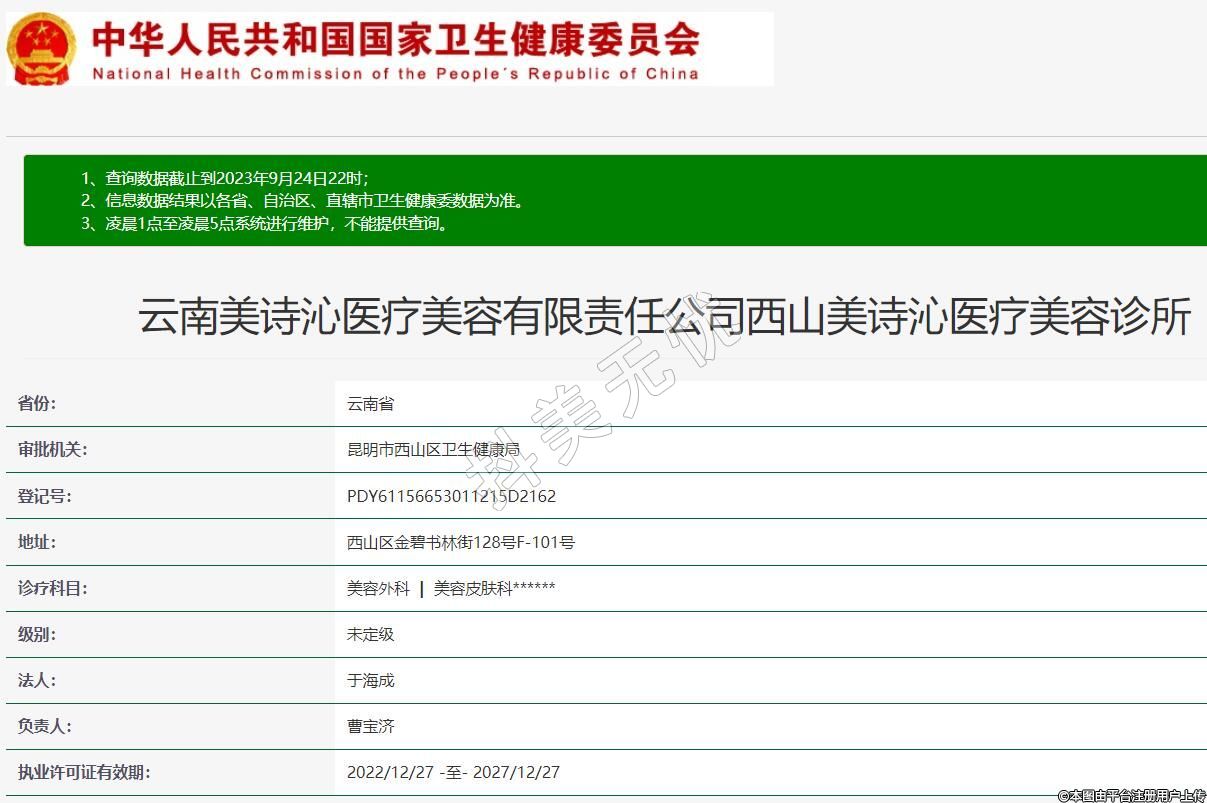 云南美詩(shī)沁醫(yī)療美容有限責(zé)任公司西山美詩(shī)沁醫(yī)療美容診所