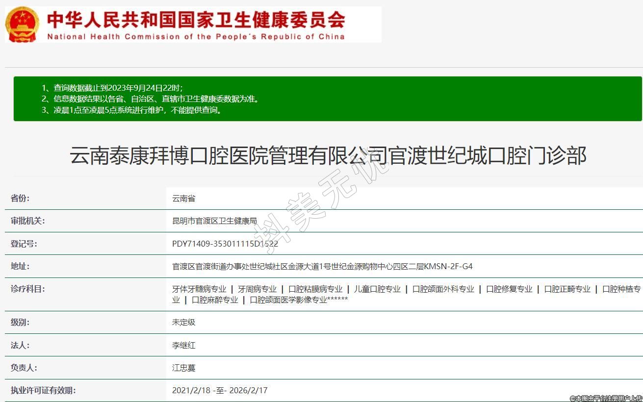 云南泰康拜博口腔醫(yī)院管理有限公司官渡世紀(jì)城口腔門診部