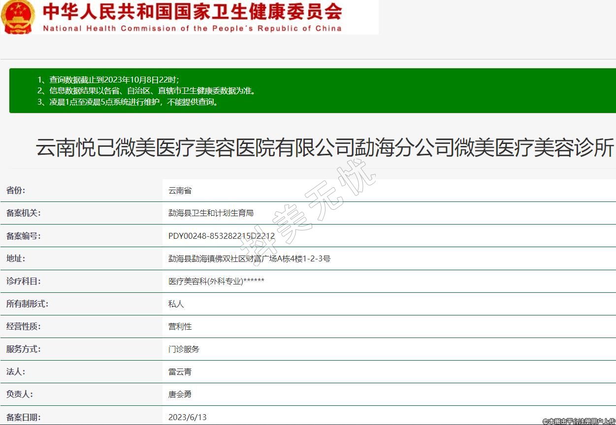 云南悅己微美醫(yī)療美容醫(yī)院有限公司勐海分公司微美醫(yī)療美容診所