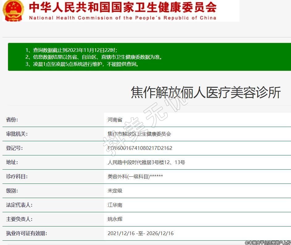 審批機關:焦作市解放區(qū)衛(wèi)生健康委員會