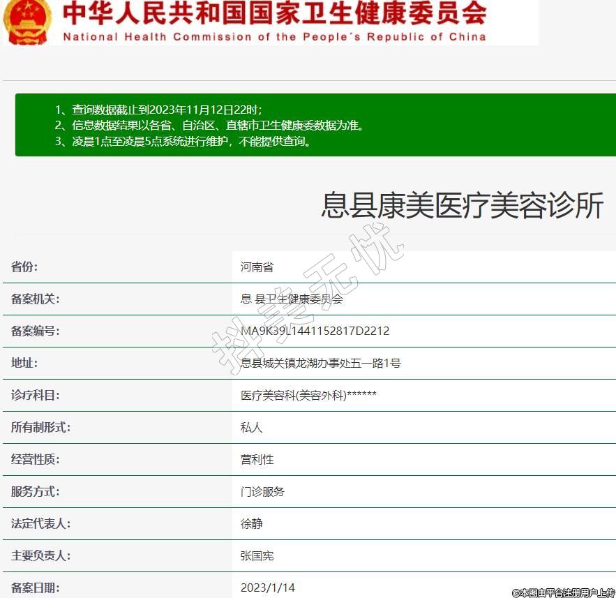 息縣康美醫(yī)療美容診所,診療科目:醫(yī)療美容科(美容外科)******