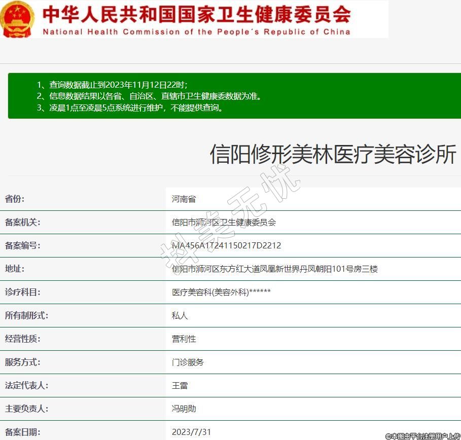 備案機關(guān):信陽市浉河區(qū)衛(wèi)生健康委員會