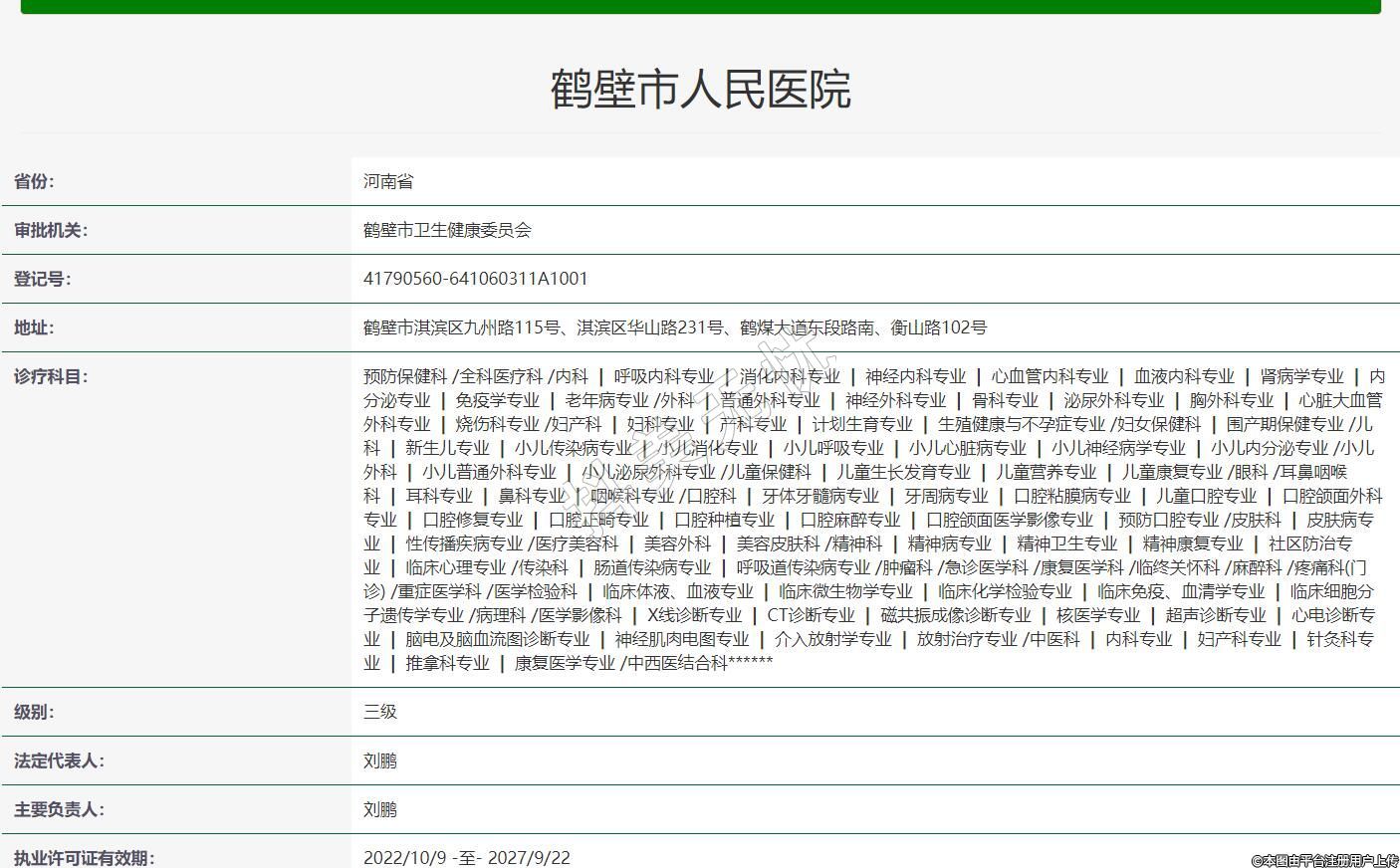 審批機關:鶴壁市衛(wèi)生健康委員會