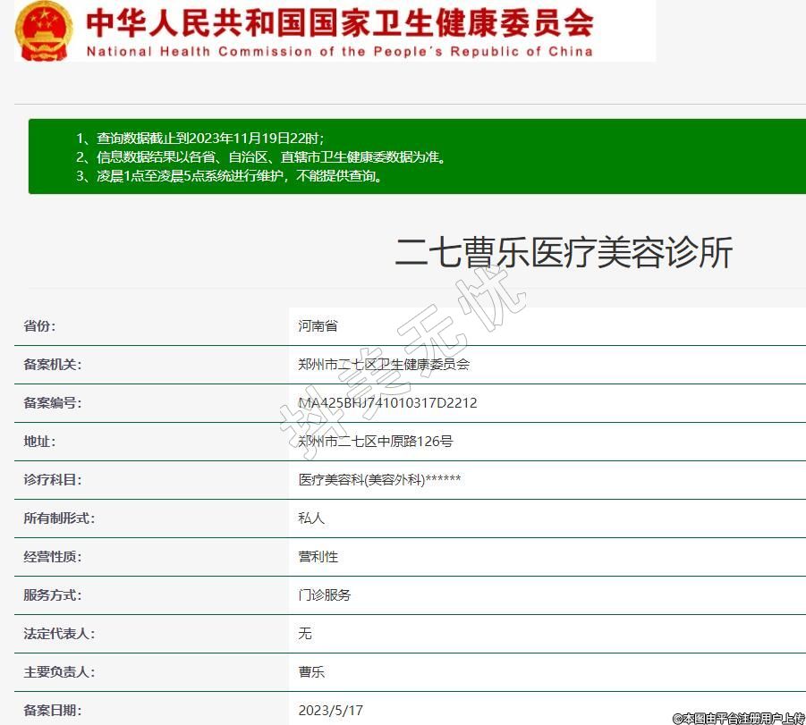 備案機關(guān):鄭州市二七區(qū)衛(wèi)生健康委員會