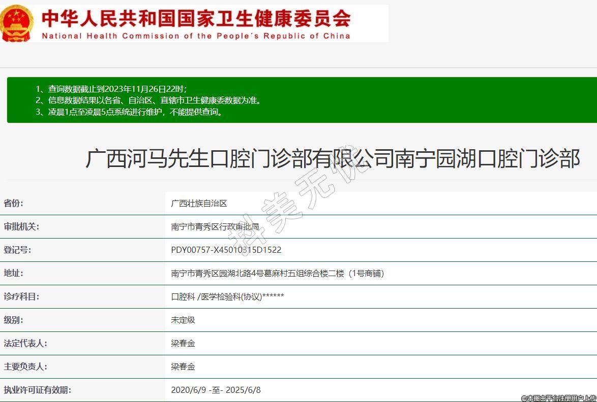 廣西河馬先生口腔門診部有限公司南寧園湖口腔門診部