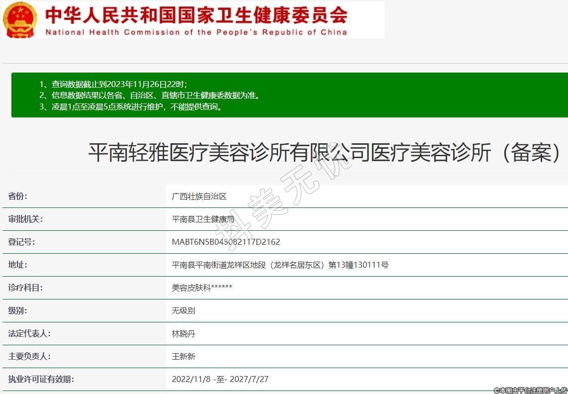 平南輕雅醫(yī)療美容診所有限公司醫(yī)療美容診所(備案)