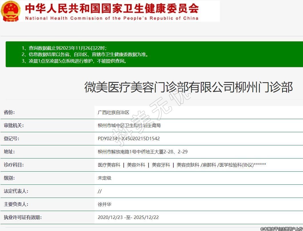 微美醫(yī)療美容門診部有限公司柳州門診部