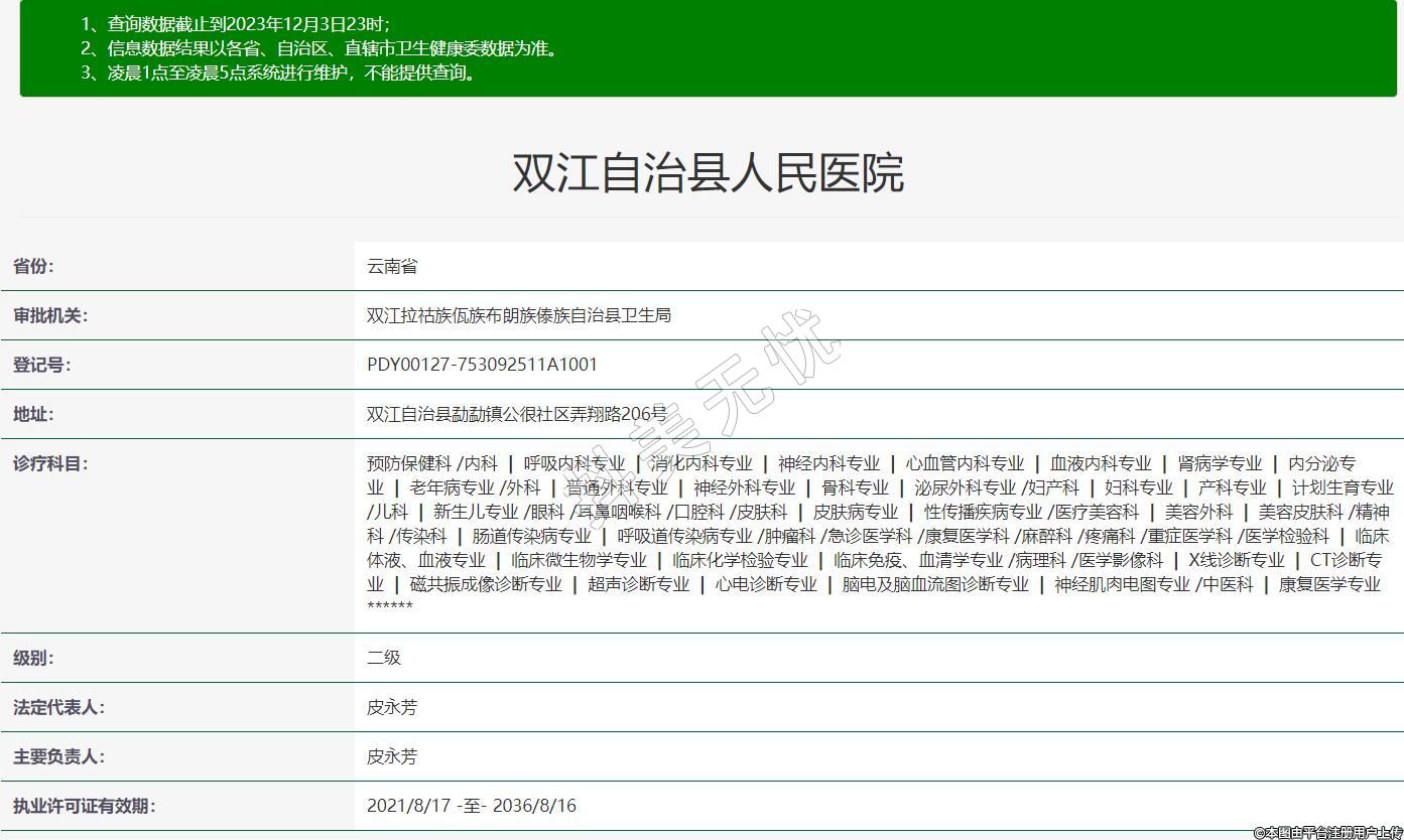 審批機關:雙江拉祜族佤族布朗族傣族自治縣衛(wèi)生局