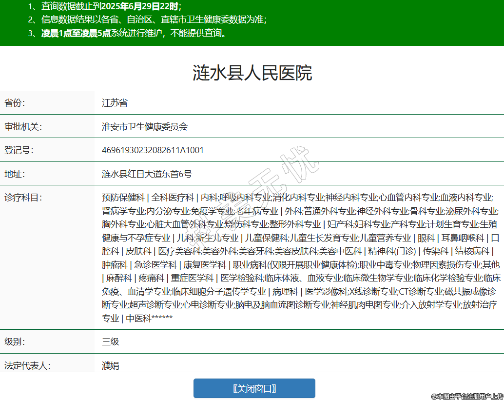 省份:江蘇省審批機關(guān):淮安市衛(wèi)生健康委員會登記號:46961930232082611A1001地址:漣水縣紅日大道東首6號診療科目:預(yù)防保健科 | 全科醫(yī)療科 | 內(nèi)科;呼吸內(nèi)科專業(yè);消化內(nèi)科專業(yè);神經(jīng)內(nèi)科專業(yè);心血管內(nèi)科專業(yè);血液內(nèi)科專業(yè);腎病學(xué)專業(yè);內(nèi)分泌專業(yè);免疫學(xué)專業(yè);老年病專業(yè) | 外科;普通外科專業(yè);神經(jīng)外科專業(yè);骨科專業(yè);泌尿外科專業(yè);胸外科專業(yè);心臟大血管外科專業(yè);燒傷科專業(yè);整形外科專業(yè) | 婦產(chǎn)科;婦科專業(yè);產(chǎn)科專業(yè);計劃生育專業(yè);生殖健康與不孕癥專業(yè) | 兒科;新生兒專業(yè) | 兒童保健科;兒童生長發(fā)育專業(yè);兒童營養(yǎng)專業(yè) | 眼科 | 耳鼻咽喉科 | 口腔科 | 皮膚科 | 醫(yī)療美容科;美容外科;美容牙科;美容皮膚科;美容中醫(yī)科 | 精神科(門診) | 傳染科 | 結(jié)核病科 | 腫瘤科 | 急診醫(yī)學(xué)科 | 康復(fù)醫(yī)學(xué)科 | 職業(yè)病科(僅限開展職業(yè)健康體檢);職業(yè)中毒專業(yè);物理因素損傷專業(yè);其他 | 麻醉科 | 疼痛科 | 重癥醫(yī)學(xué)科 | 醫(yī)學(xué)檢驗科;臨床體液、血液專業(yè);臨床微生物學(xué)專業(yè);臨床化學(xué)檢驗專業(yè);臨床免疫、血清學(xué)專業(yè);臨床細胞分子遺傳學(xué)專業(yè) | 病理科 | 醫(yī)學(xué)影像科;X線診斷專業(yè);CT診斷專業(yè);磁共振成像診斷專業(yè);超聲診斷專業(yè);心電診斷專業(yè);腦電及腦血流圖診斷專業(yè);神經(jīng)肌肉電圖專業(yè);介入放射學(xué)專業(yè);放射治療專業(yè) | 中醫(yī)科******級別:三級法定代表人:濮娟主要負責(zé)人:濮娟執(zhí)業(yè)許可證有效期:2024/09/12 -至- 2035/08/11 -