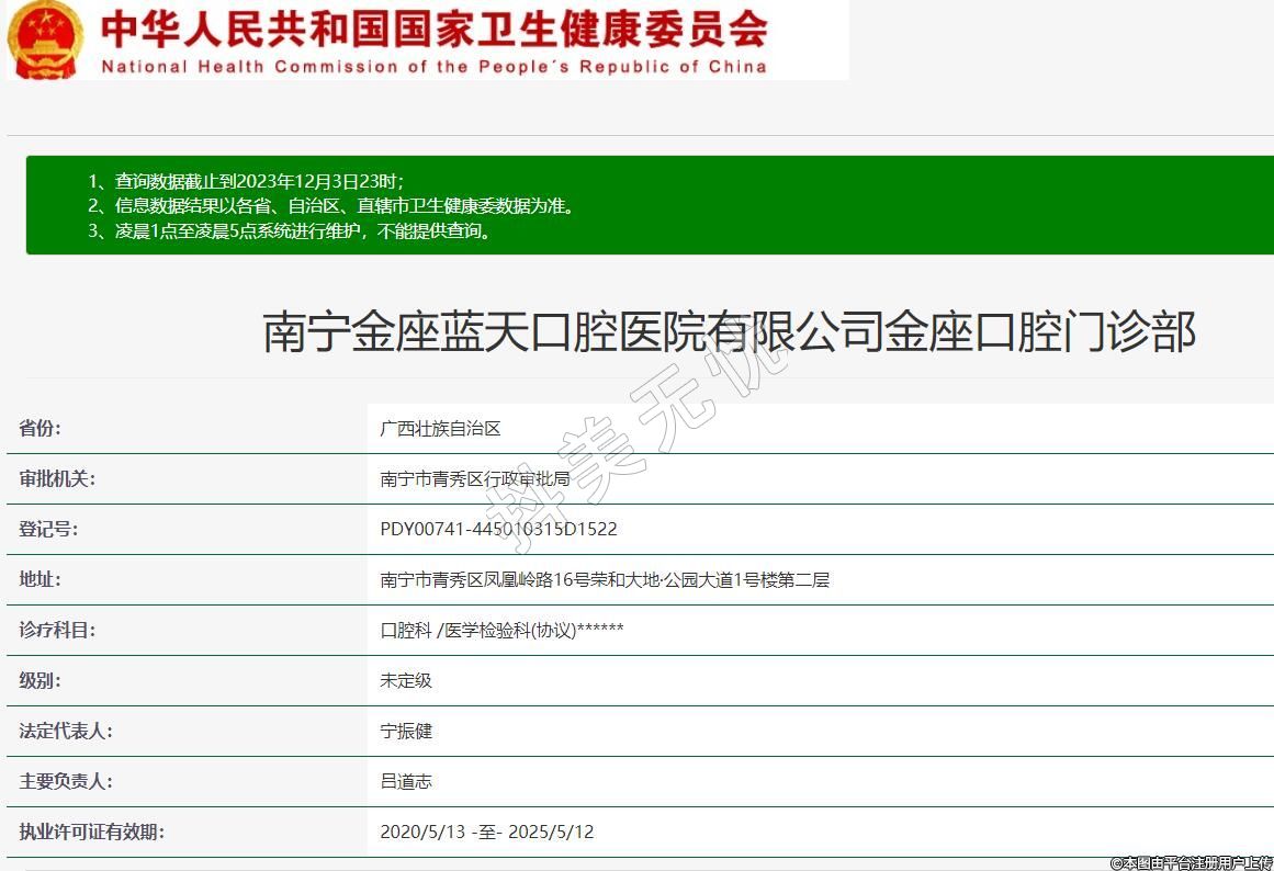 南寧金座藍(lán)天口腔醫(yī)院有限公司金座口腔門診部