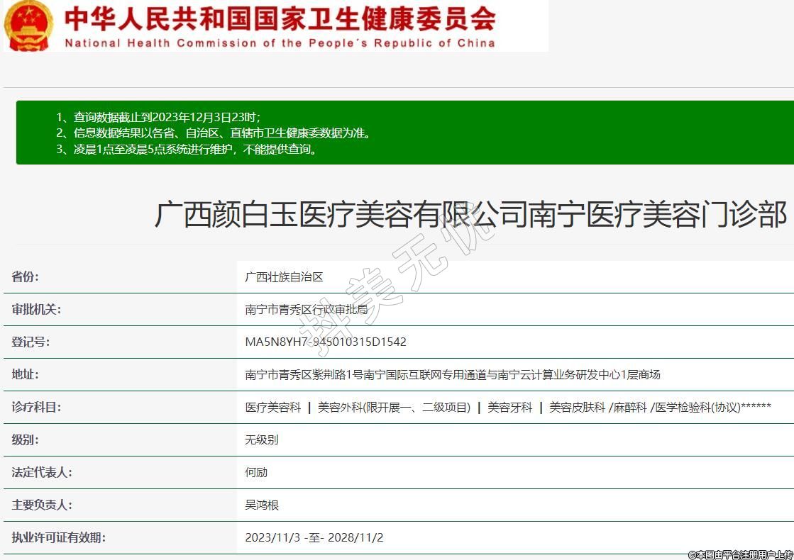 廣西顏白玉醫(yī)療美容有限公司南寧醫(yī)療美容門診部