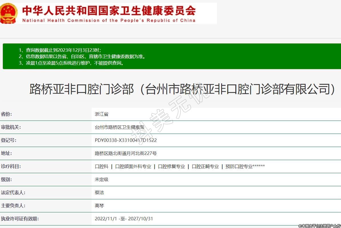 路橋亞非口腔門診部(臺州市路橋亞非口腔門診部有限公司)