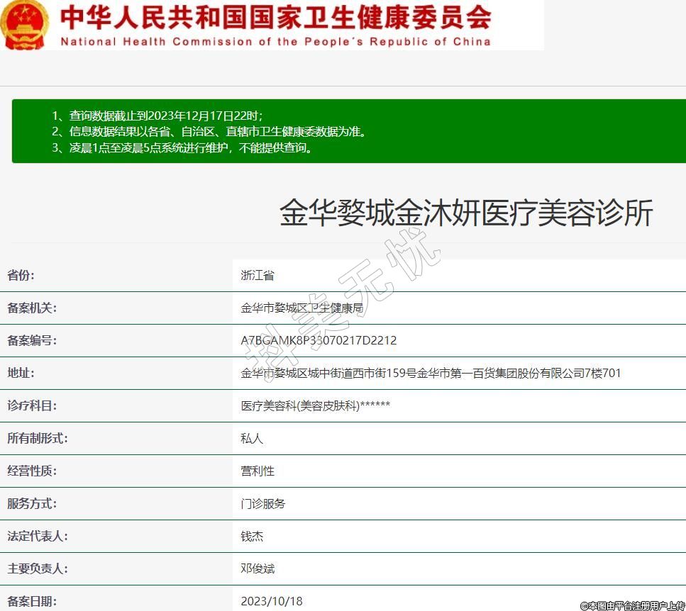 備案機關(guān):金華市婺城區(qū)衛(wèi)生健康局