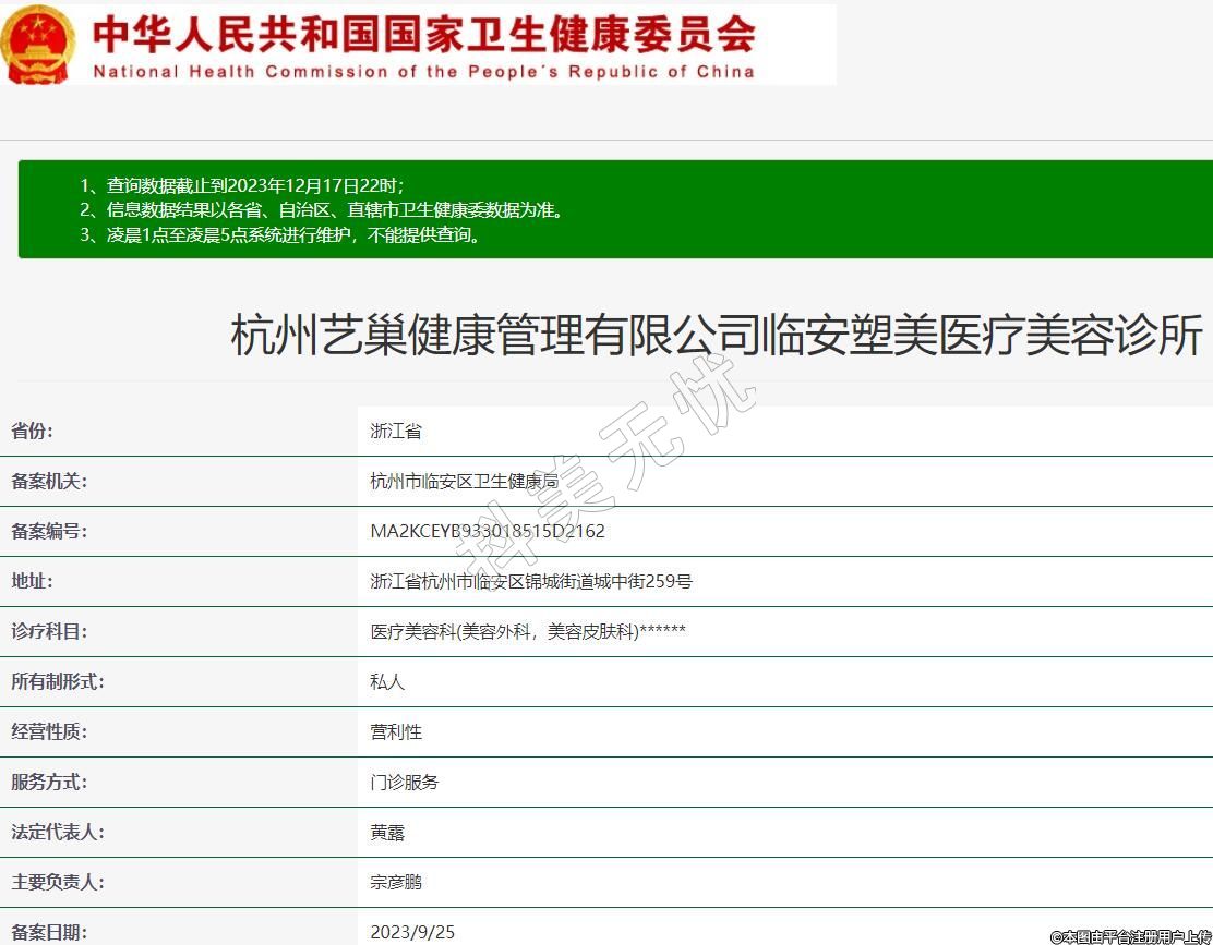 備案機(jī)關(guān):杭州市臨安區(qū)衛(wèi)生健康局