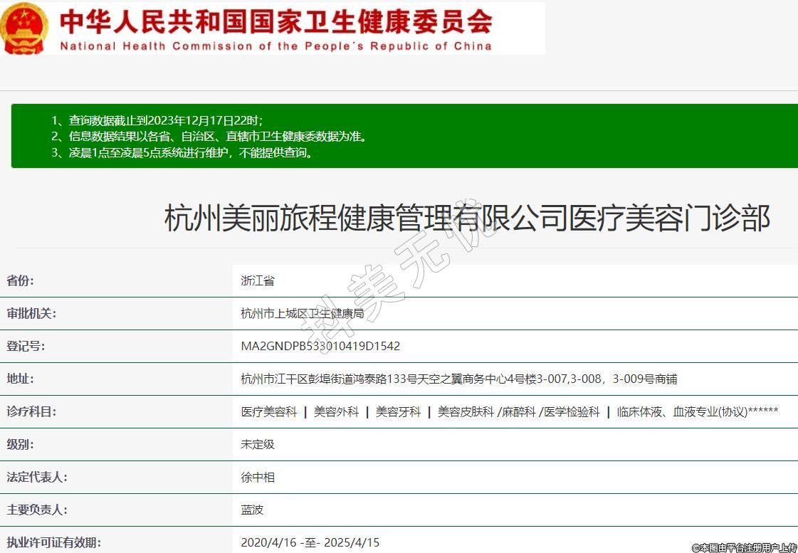 杭州美麗旅程健康管理有限公司醫(yī)療美容門診部
