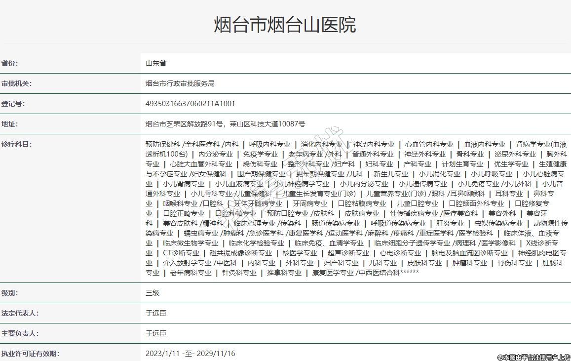 執(zhí)業(yè)許可證有效期:2023/1/11 -至- 2029/11/16