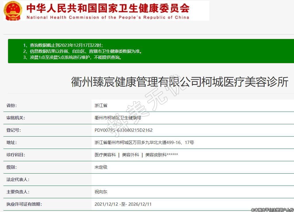 衢州臻宸健康管理有限公司柯城醫(yī)療美容診所