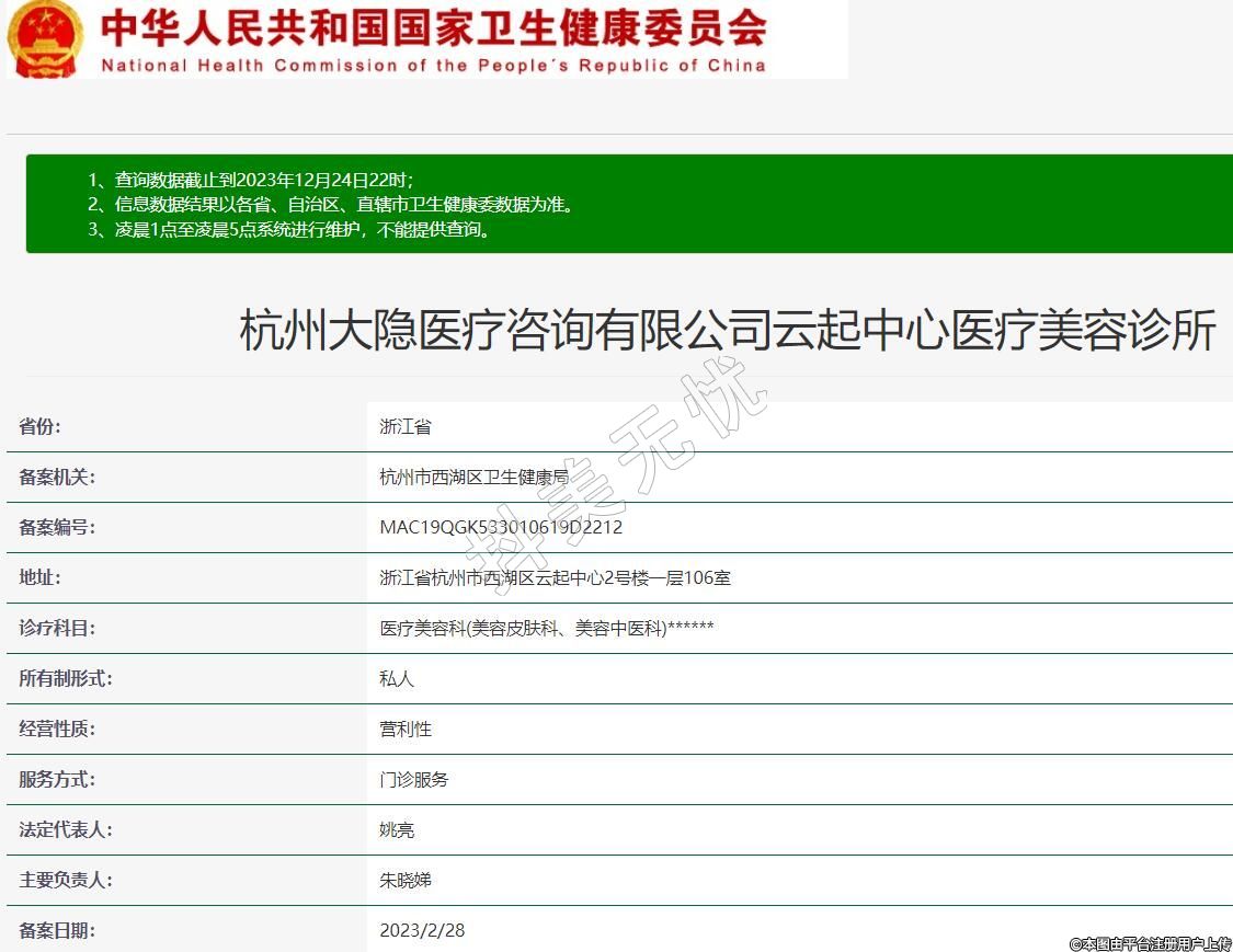 杭州大隱醫(yī)療咨詢有限公司云起中心醫(yī)療美容診所