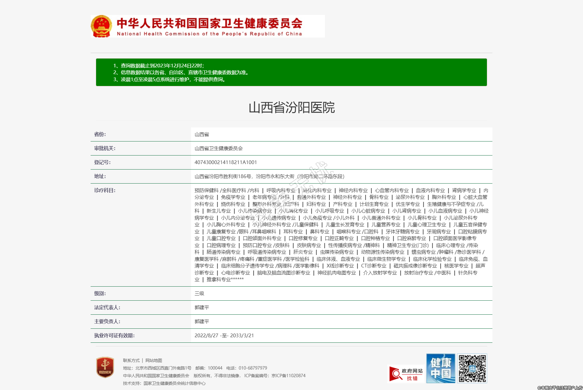 執(zhí)業(yè)許可證有效期:2022/8/27 -至- 2033/3/21