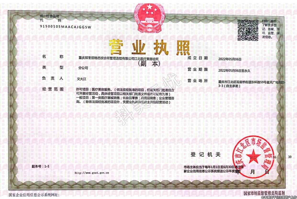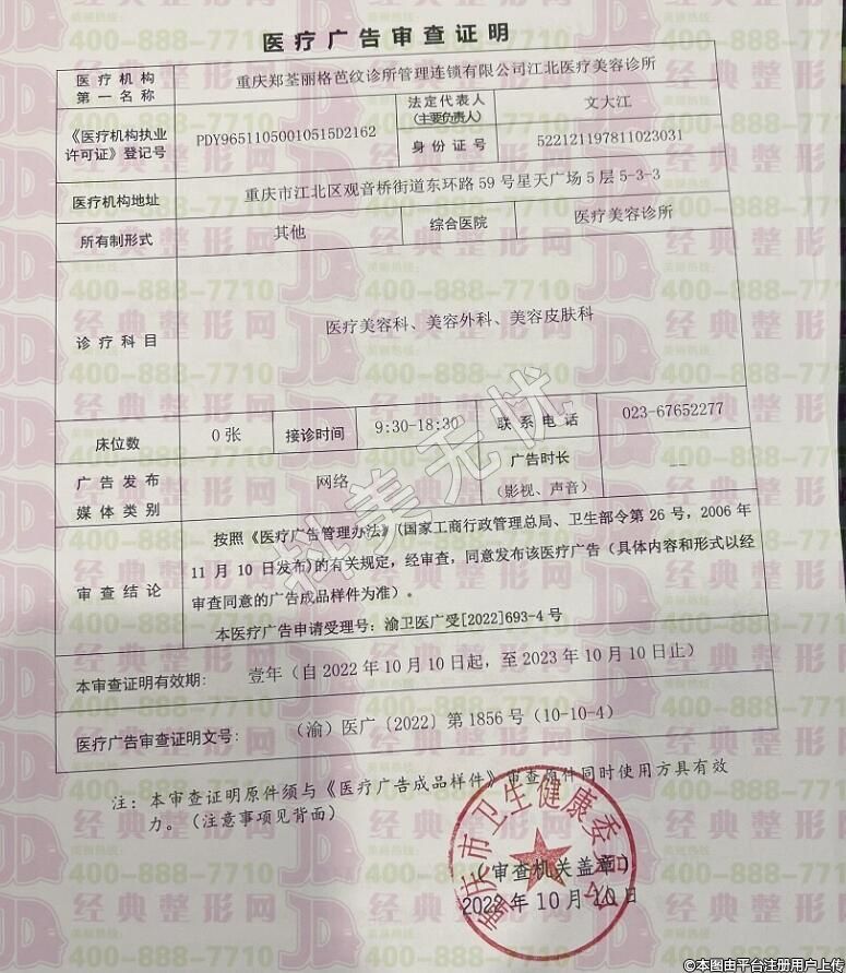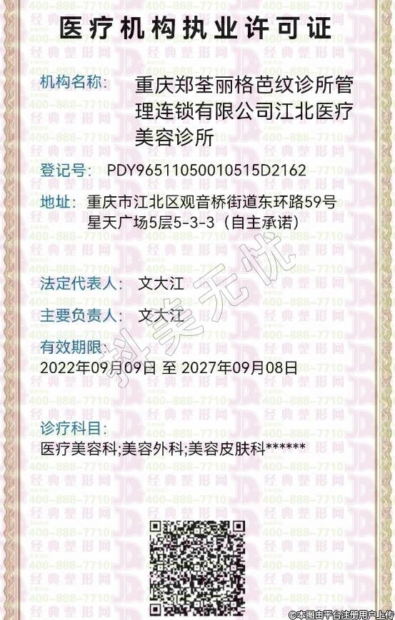 機(jī)構(gòu)名稱:重慶鄭荃麗格芭紋診所管理連鎖有限公司江北醫(yī)療美容診所