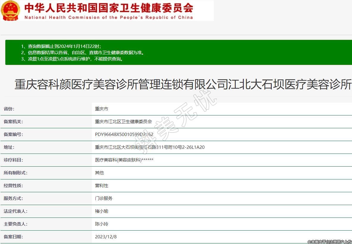重慶容科顏醫(yī)療美容診所管理連鎖有限公司江北大石壩醫(yī)療美容診所