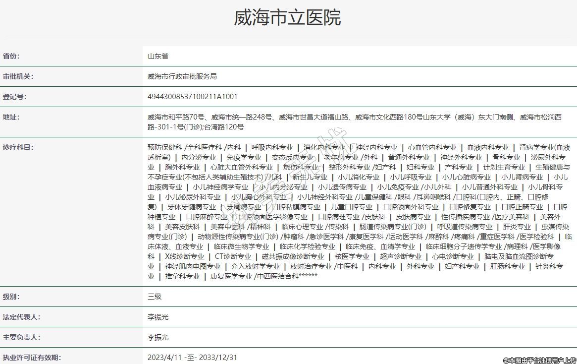 地址:威海市和平路70號、威海市統(tǒng)一路248號、威海市世昌大道福山路、威海市文化西路180號山東大學(xué)(威海)東大門南側(cè)、威海市松澗西路-301-1號(門診);臺灣路120號