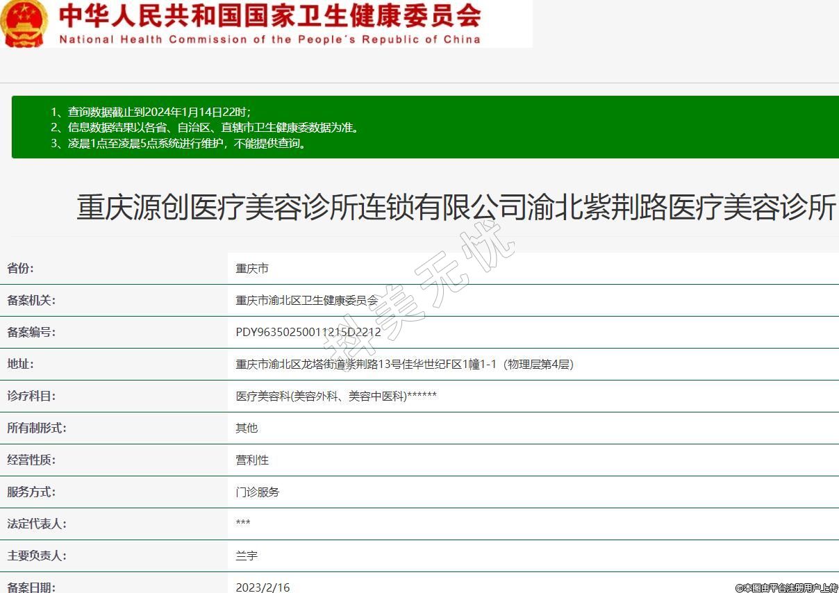 重慶源創(chuàng)醫(yī)療美容診所連鎖有限公司渝北紫荊路醫(yī)療美容診所