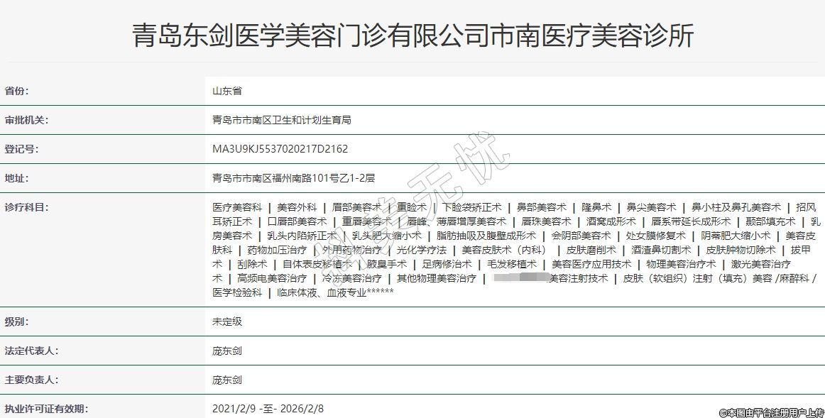 青島東劍醫(yī)學(xué)美容門診有限公司市南醫(yī)療美容診所