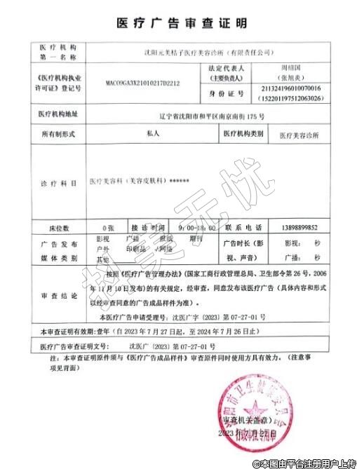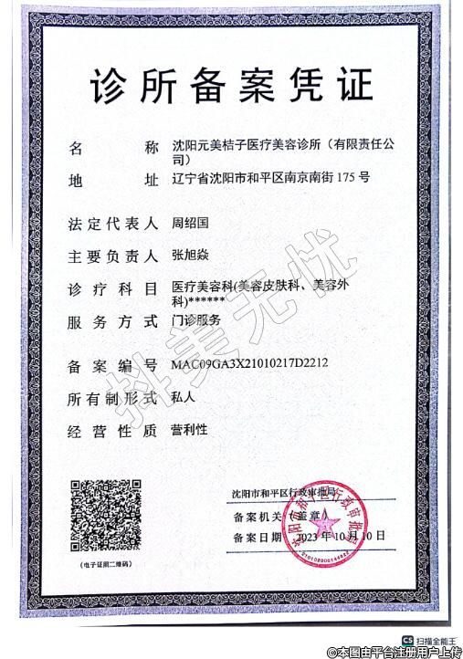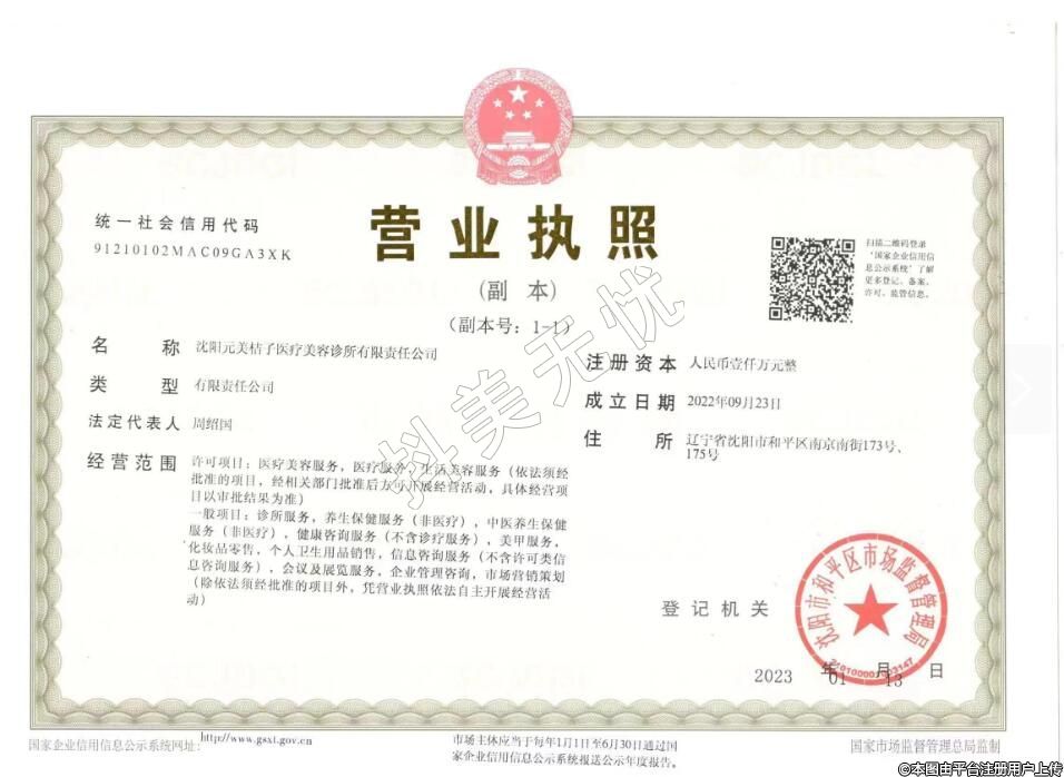 名稱:沈陽元美桔子醫(yī)療美容診所(有限責任公稱司)
