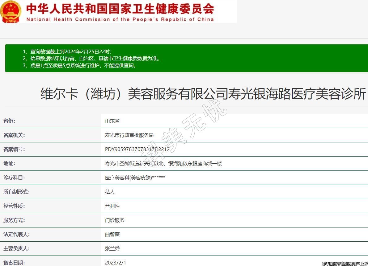 維爾卡(濰坊)美容服務(wù)有限公司壽光銀海路醫(yī)療美容診所