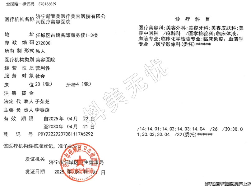 機(jī)構(gòu)名稱:濟(jì)寧新壹美醫(yī)療美容醫(yī)院有限公司醫(yī)療美容醫(yī)院