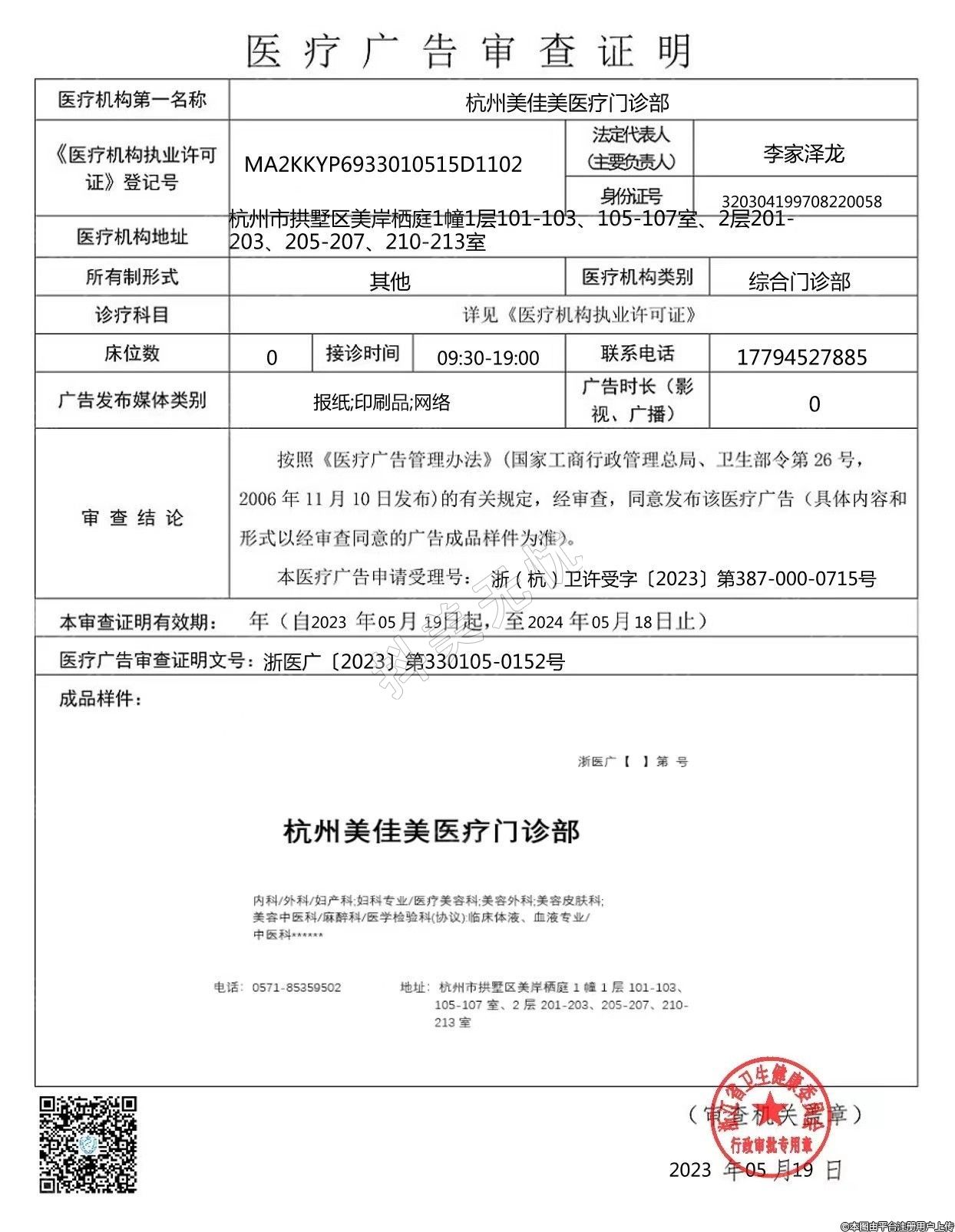 發(fā)證機(jī)關(guān):杭州市拱墅區(qū)衛(wèi)生健康局