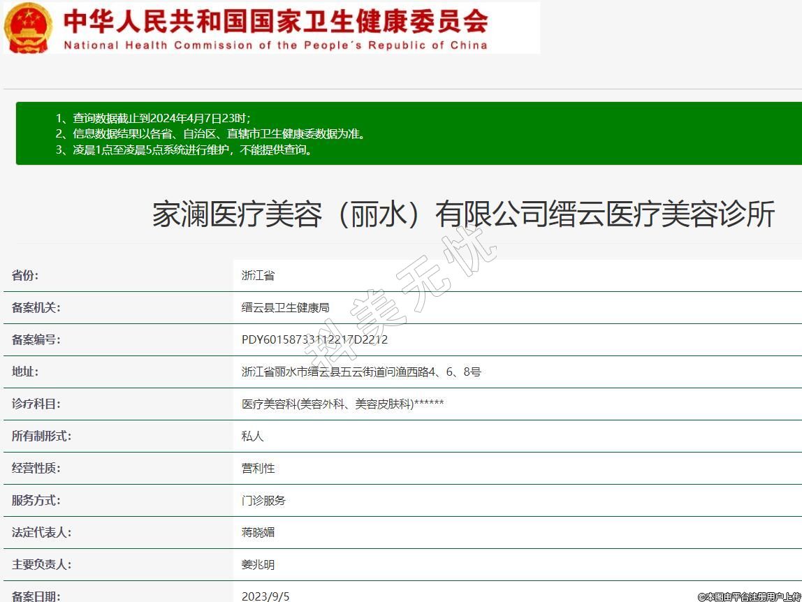 家瀾醫(yī)療美容(麗水)有限公司縉云醫(yī)療美容診所
