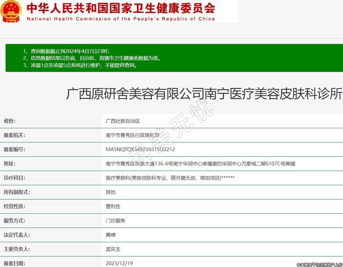 廣西原研舍美容有限公司南寧醫(yī)療美容皮膚科診所
