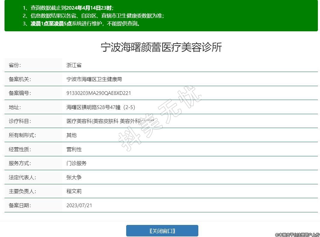 備案機(jī)關(guān):寧波市海曙區(qū)衛(wèi)生健康局