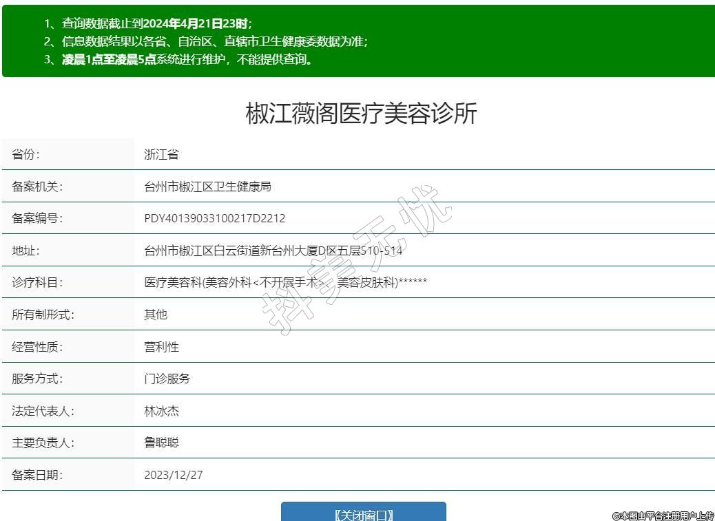 臺州薇閣醫(yī)療美容診所成立于2020年,位于臺州市椒江區(qū)白云街道新臺州大廈D區(qū)五層,是經(jīng)臺州市衛(wèi)健委批準(zhǔn)成立的正規(guī)醫(yī)療機(jī)構(gòu)。臺州薇閣醫(yī)療美容診所經(jīng)營理念主要以預(yù)約定制的概念,準(zhǔn)確的說是國內(nèi)外高端醫(yī)療資源定制平臺。顧客來到薇閣可以享受到一站式全生命周期的健康養(yǎng)護(hù),包括五維管理,也是把醫(yī)療美容手術(shù)做到精準(zhǔn)細(xì)分的整形機(jī)構(gòu)。