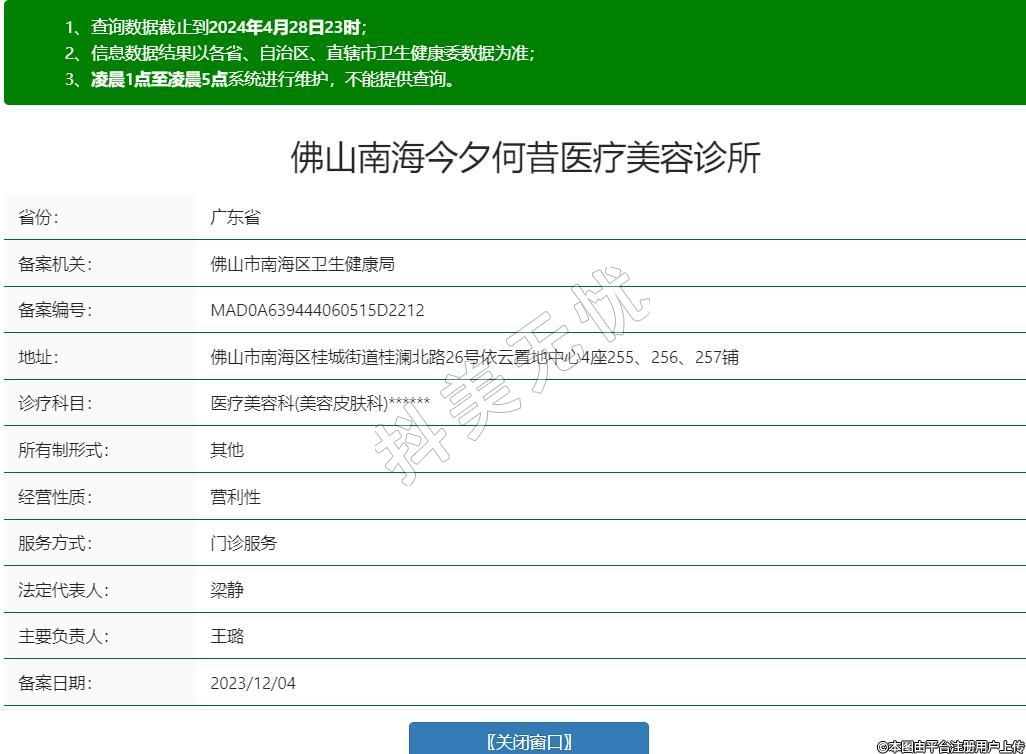 佛山南海今夕何昔醫(yī)療美容診所,診療科目:醫(yī)療美容科(美容皮膚科)******