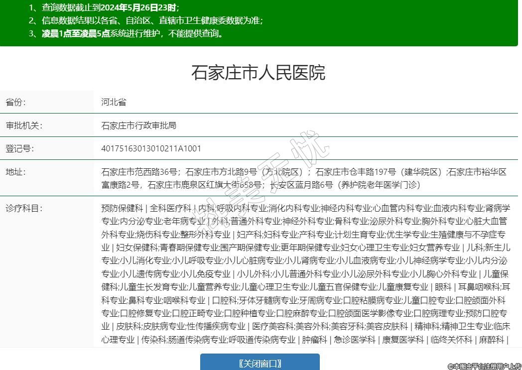 石家莊市范西路36號(hào);石家莊市方北路9號(hào)(方北院區(qū));石家莊市倉(cāng)豐路197號(hào)(建華院區(qū));石家莊市裕華區(qū)富康路2號(hào),石家莊市鹿泉區(qū)紅旗大街658號(hào);長(zhǎng)安區(qū)藍(lán)月路6號(hào)(養(yǎng)護(hù)院老年醫(yī)學(xué)門診)