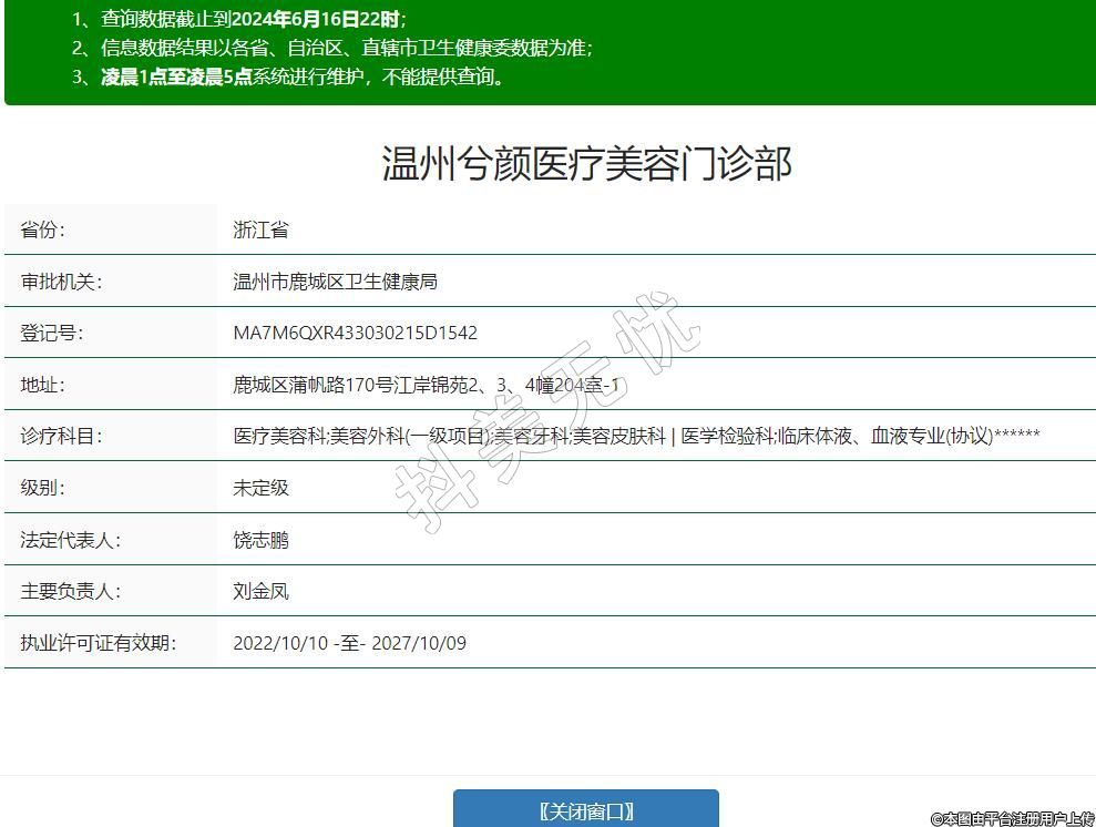 醫(yī)療美容科;美容外科(一級(jí)項(xiàng)目);美容牙科;美容皮膚科 | 醫(yī)學(xué)檢驗(yàn)科;臨床體液、血液專業(yè)(協(xié)議)******