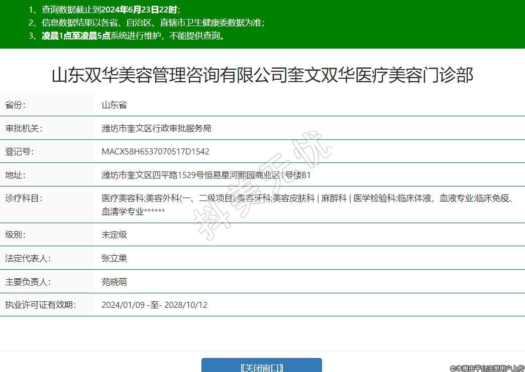 山東雙華美容管理咨詢有限公司奎文雙華醫(yī)療美容門診部