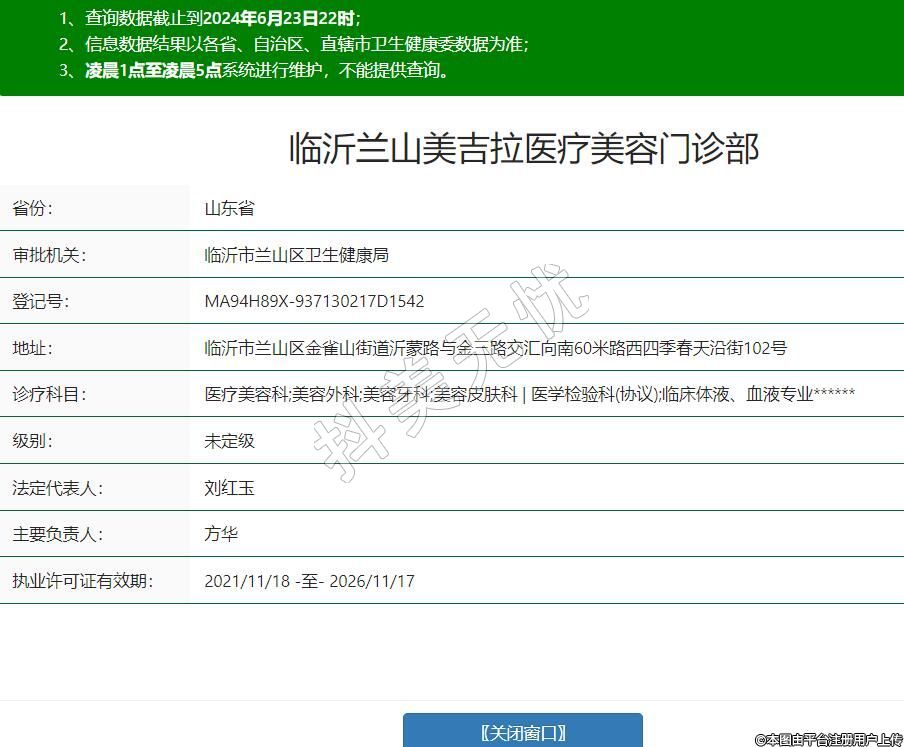 臨沂蘭山美吉拉醫(yī)療美容門診部,療科目:醫(yī)療美容科;美容外科;美容牙科;美容皮膚科 | 醫(yī)學(xué)檢驗科(協(xié)議);臨床體液、血液專業(yè)******