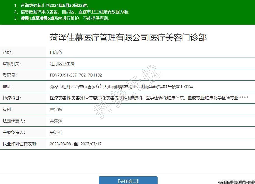 菏澤佳慕醫(yī)療管理有限公司醫(yī)療美容門診部