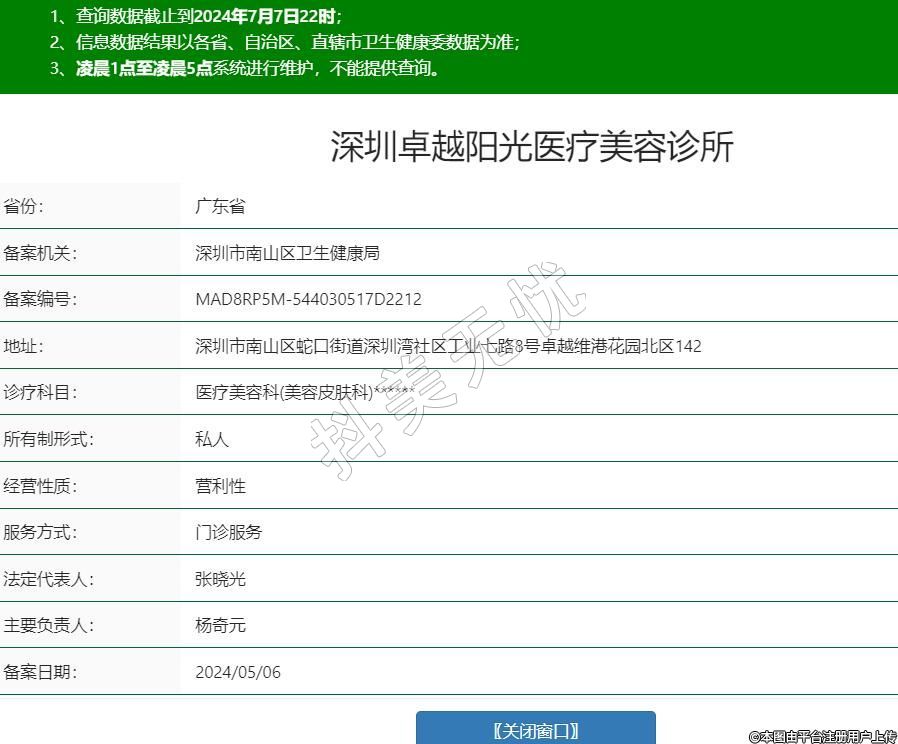 深圳卓越陽光醫(yī)療美容診所,診療科目:醫(yī)療美容科(美容皮膚科)******