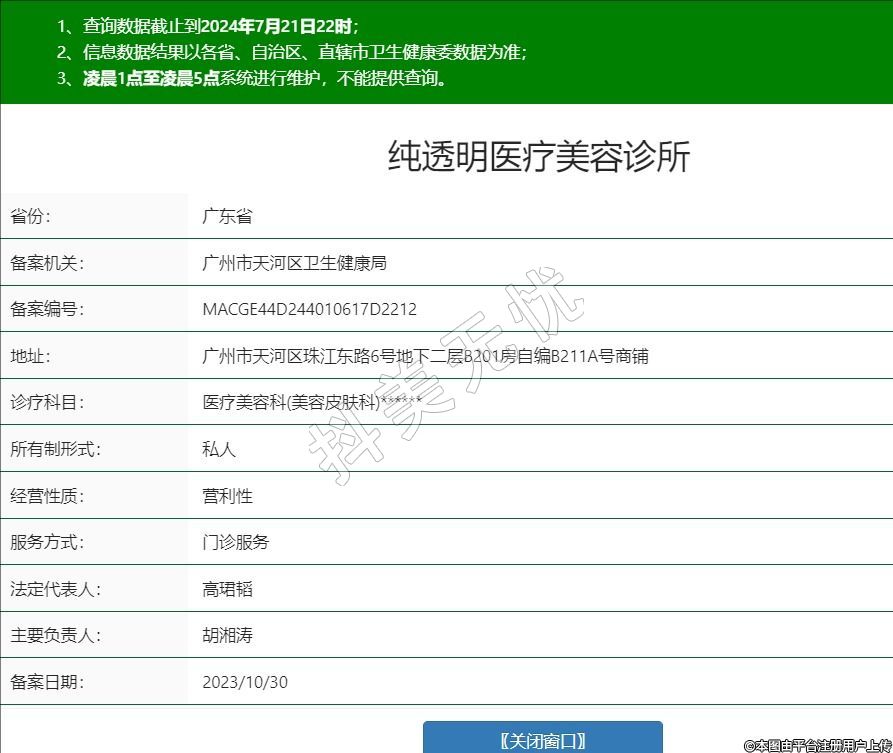 廣州純透明醫(yī)療美容診所于2023年成立,位于廣州市天河區(qū)珠江東路6號地下二層B201房自編B211A號商鋪,是一家以診療便捷化、產(chǎn)品透明化、服務(wù)專業(yè)化為特色的快時尚輕醫(yī)美連鎖品牌機構(gòu)。以“便捷式細(xì)胞充能站"為品牌定位,以“價格透明、打破買賣方信息不對稱、一站式服務(wù)"為經(jīng)營理念,經(jīng)營損傷小、恢復(fù)快、見效快、抗初老、面部注射微調(diào)等項目。