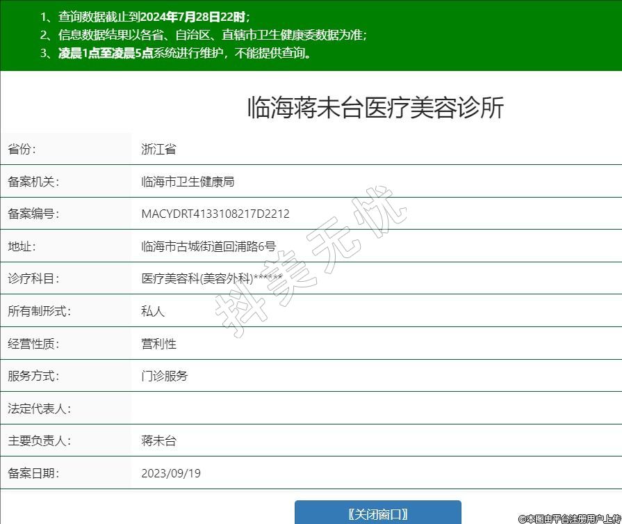臨海蔣未臺醫(yī)療美容,診療科目:醫(yī)療美容科(美容外科)******